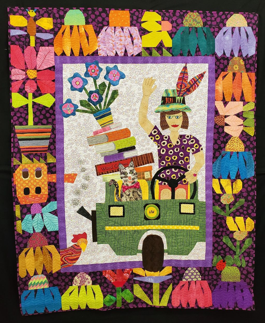 Technique: Machine pieced, paper pieced, applique, machine quilting.