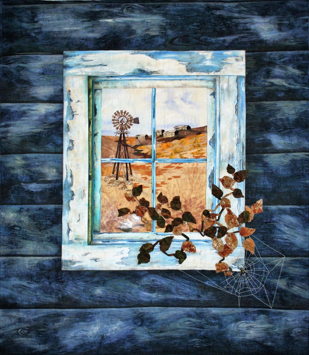 This quilt was made for three challenges. A book challenge, Clark County Quilters Show 2015 Challenge 'Word in a Quilt', and an Art Quilt Group Challenge, "An Element and Animal."