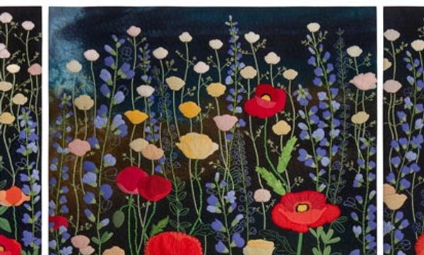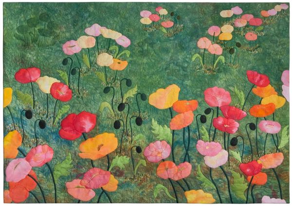 Waves of Poppies is my second wall hanging featuring poppies and my fourth in a series of floral quilts. I challenged myself to create more abstract flowers than those in my previous works. The goal for the poppies and overall composition was to provide the viewer an impression of movement and distance.